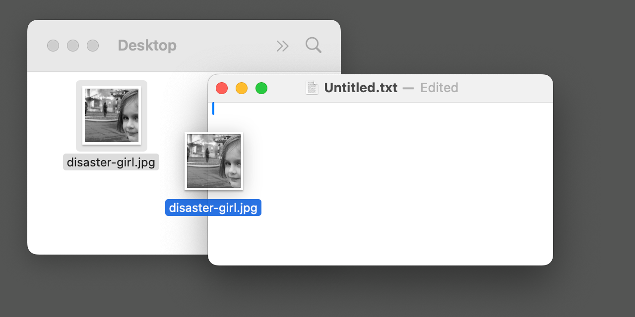 For example, most people know you can drag a file in a Finder window to move it, or open it in an application by dropping it on the application. However, dragging a file has several other less obvious drop targets.