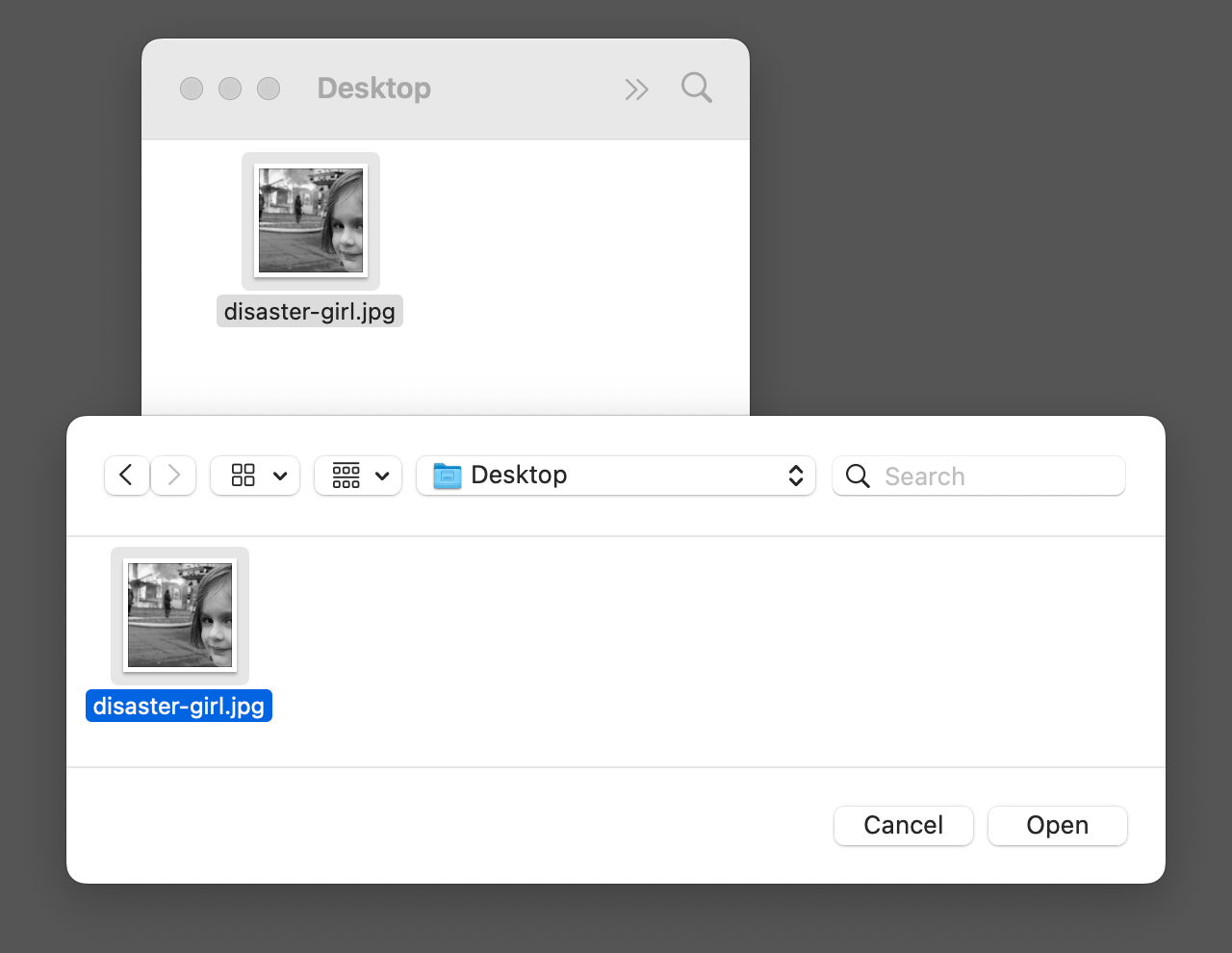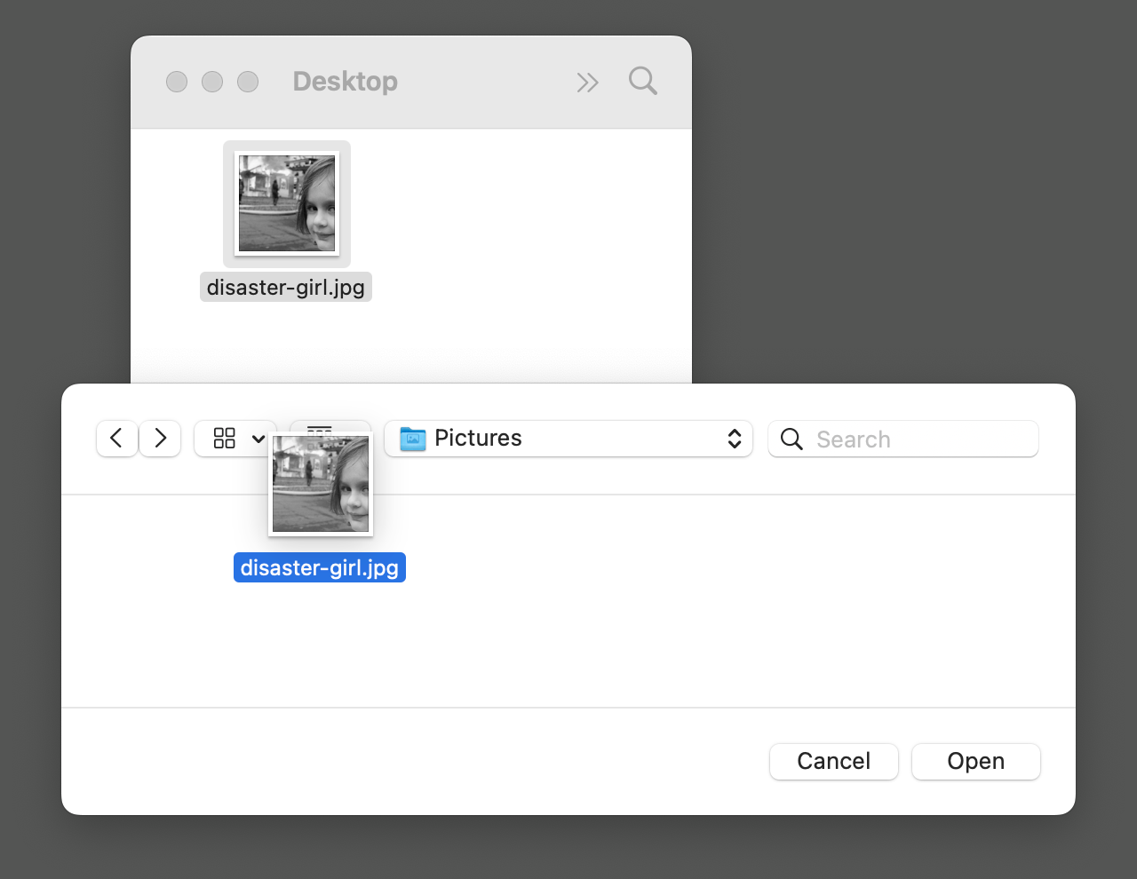When you drop the file, it becomes the Open dialogue’s selection. You will find this especially useful when the file you want to open already appears in a Finder window: